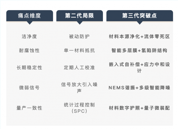 然而,传统主流压力传感技术在应对超洁净、强腐蚀、高精度、长寿命、防泄漏的综合挑战时,纷纷触及性能天花板。